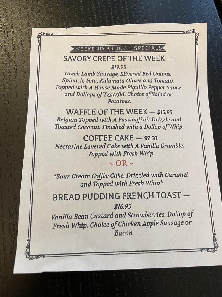 caramelized apples, brie cheese, toasted walnuts, topped with honey and powdered sugar